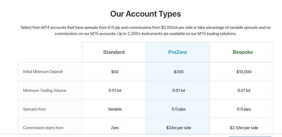 | Account Type | Standard | ProZero |