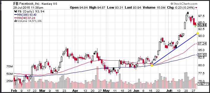 3) you may use a medium term moving average. Here you might target your stop loss as a medium term moving average. For example, you might purchase Facebook and hold it until it crosses below the 40-day moving average. If the price of the stock continues to climb, you may hold the position until the stop loss is breached.