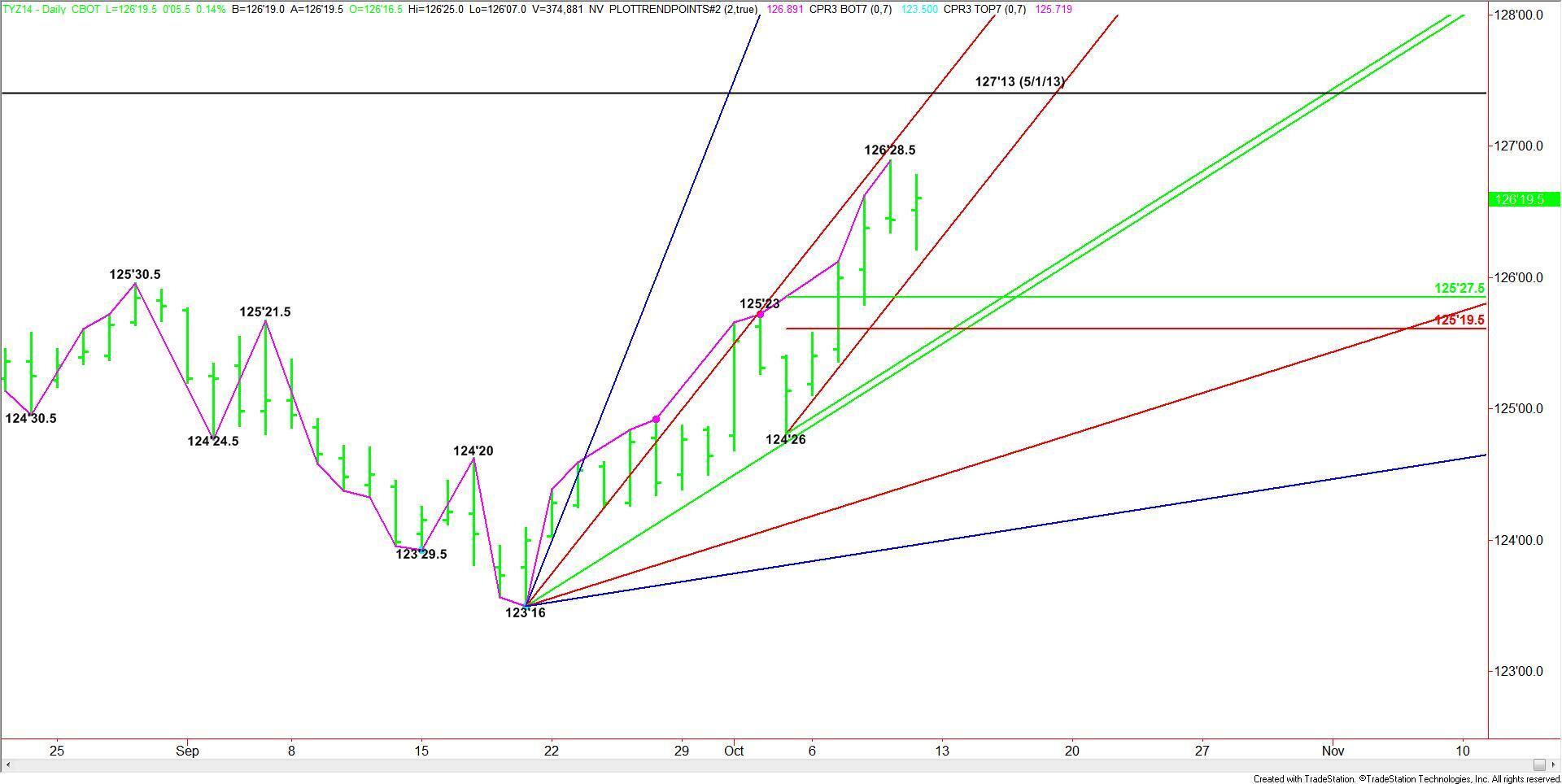 December 10-Year U.S. Treasury Notes closed higher, but after posting a lower-low. The move made 126’28.5 a new minor top. The short-term range is 124’26
