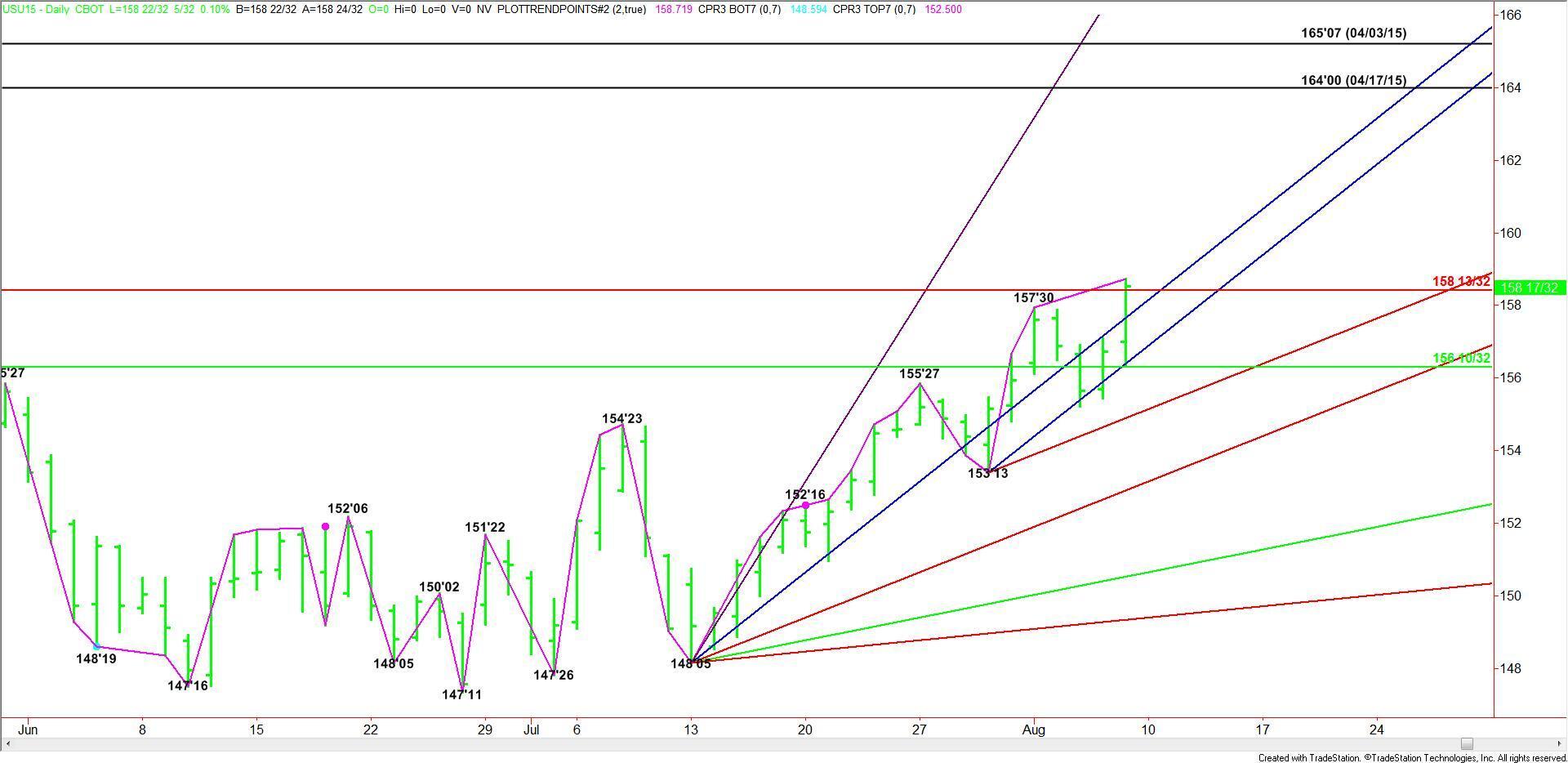 September 30-Year U.S. Treasury Bonds finished sharply higher and on the bullish side of a Fibonacci level on Friday, putting the market in a position to accelerate to the upside.