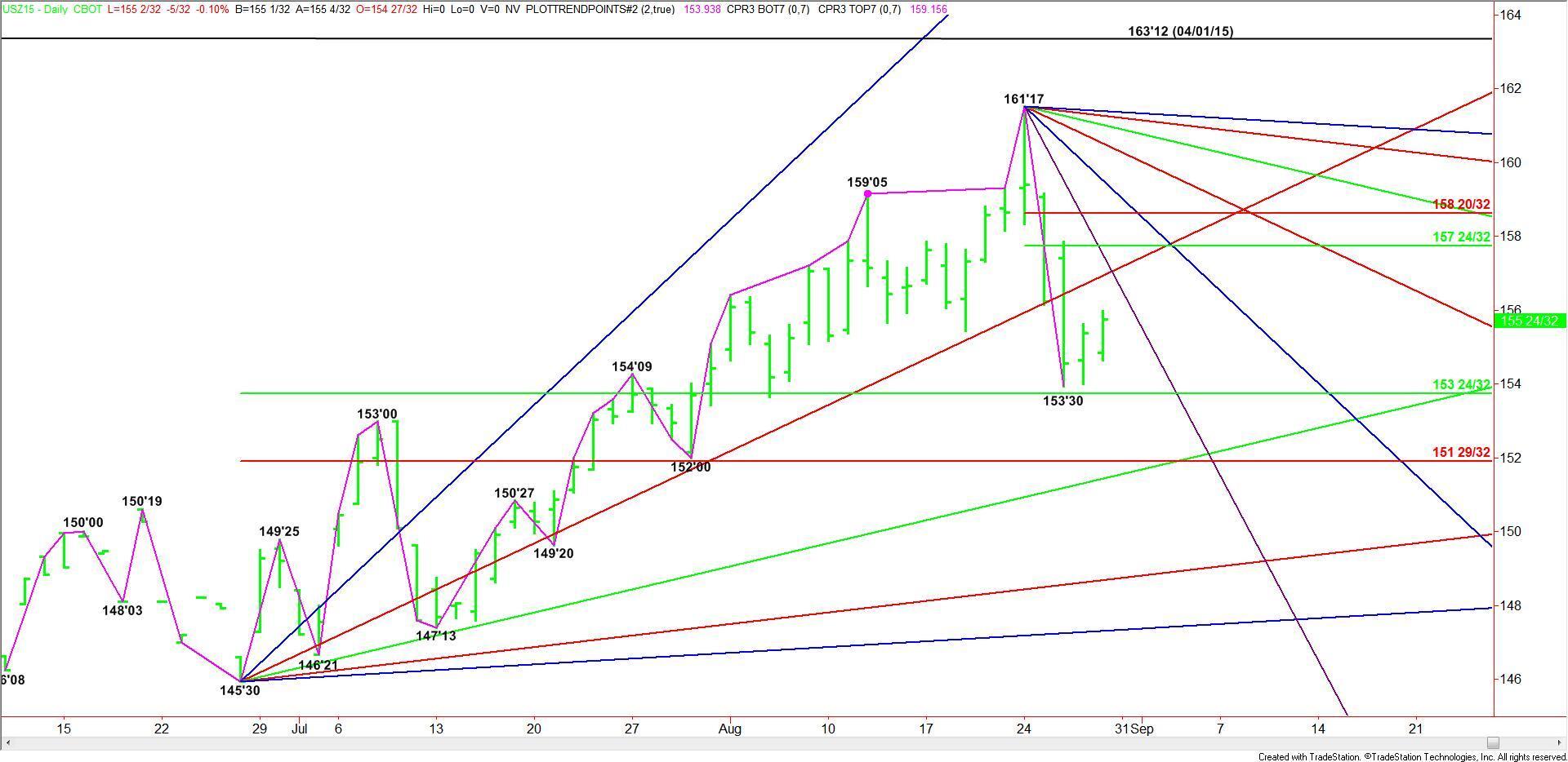 December 30-Year U.S. Treasury Bonds continued to consolidate on Friday. The main trend is up according to the daily swing chart, however, momentum