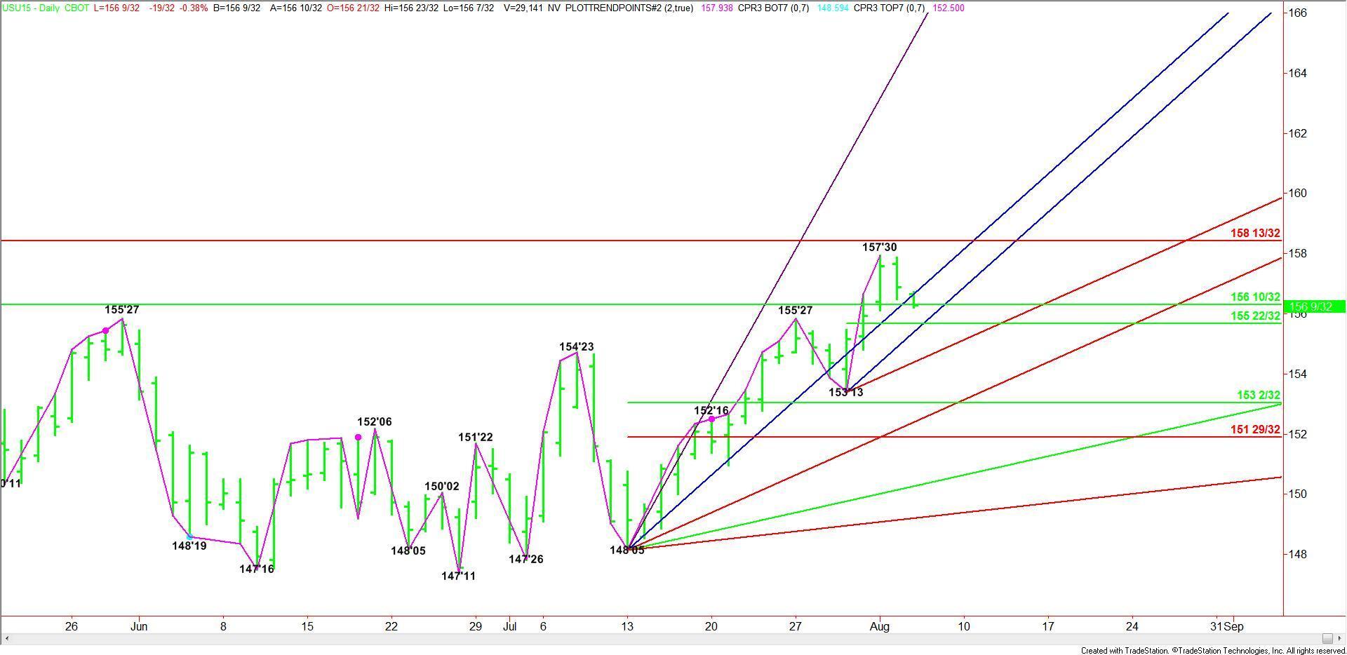 September 30-Year U.S. Treasury Bonds are called lower after a sharp sell-off on Tuesday. The catalyst for the weakness was a bearish comment from Dennis Lockhart, President of the Federal Reserve Bank of Atlanta. In an article in the Wall Street Journal, Lockhart suggested that Fed policy makers are prepared to raise the Fed funds rate in September.