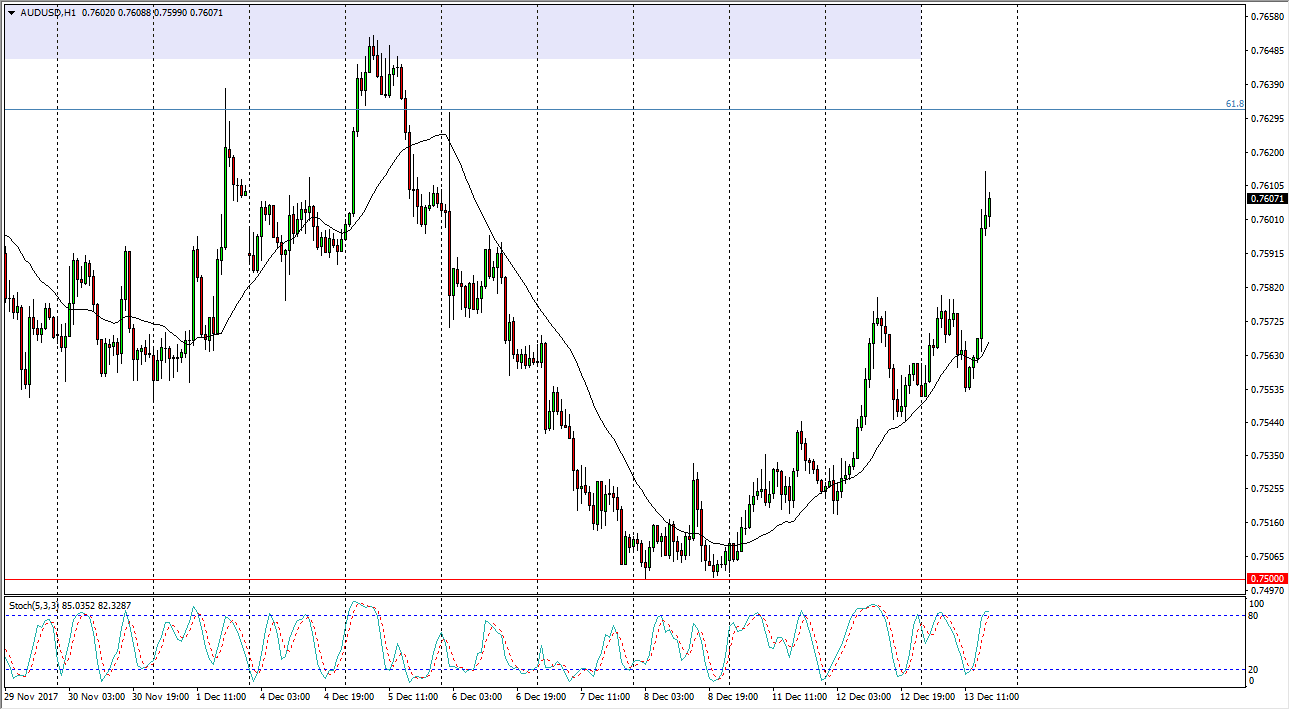 The Australian dollar initially dipped during the day on Thursday, but found enough support to turn around Anna rally significantly, mainly upon the idea that tax reform may not get done in the United States. As we await the Federal Reserve Statement, the Wednesday session is tentatively bullish, but an overly hawkish Federal Reserve will send this market much lower, perhaps reaching towards the 0.75 level. Essentially, what we are looking at right now is whether the commodity currencies are starting the bottom? A breakdown below the 0.75 level would be catastrophic for the Australian dollar, sending us much lower. If we rally from here again, there is a lot of noise near the 0.7650 level, and most certainly at the 0.78 handle. Because of this, I think that we will remain choppy, even if we are somewhat bullish in the short term.