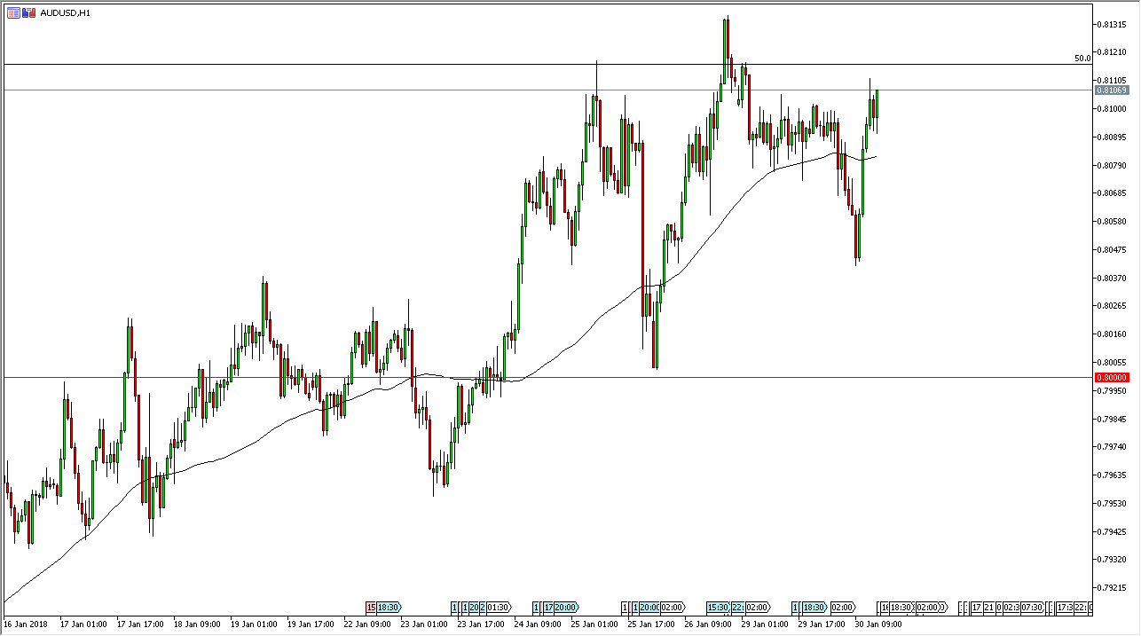 The Australian dollar has rallied again during the day on Tuesday, reaching towards the 0.81 level again. However, we continue to see a lot of noise in this market, as we are approaching a major breakout level, which could lead to a “buy-and-hold” situation.