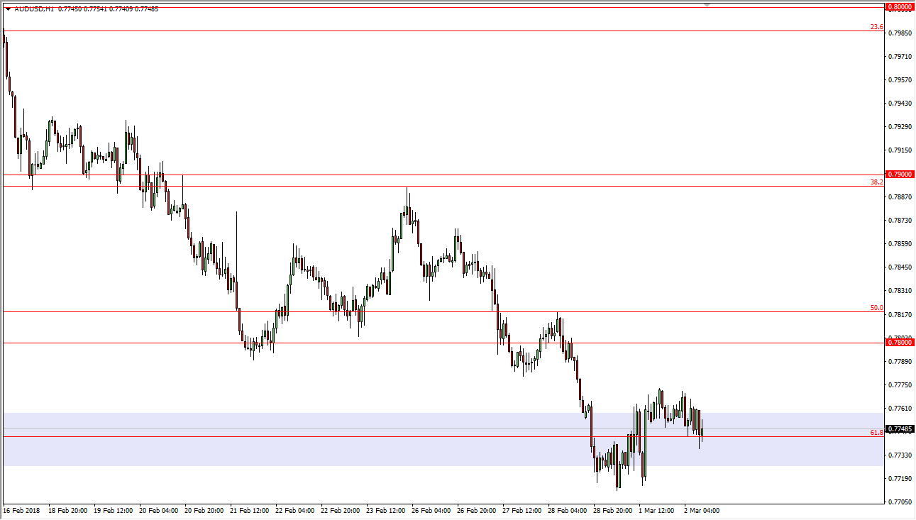 The Australian dollar has drifted a bit lower during the trading session on Friday, as we continue to bounce around the 61.8% Fibonacci retracement level. I believe that the next couple of sessions will be very important to the next move.