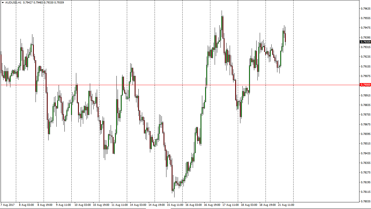 The Australian dollar initially fell on Monday, but found enough support just above the 0.79 level to shoot higher. Pay attention to gold, it tends to