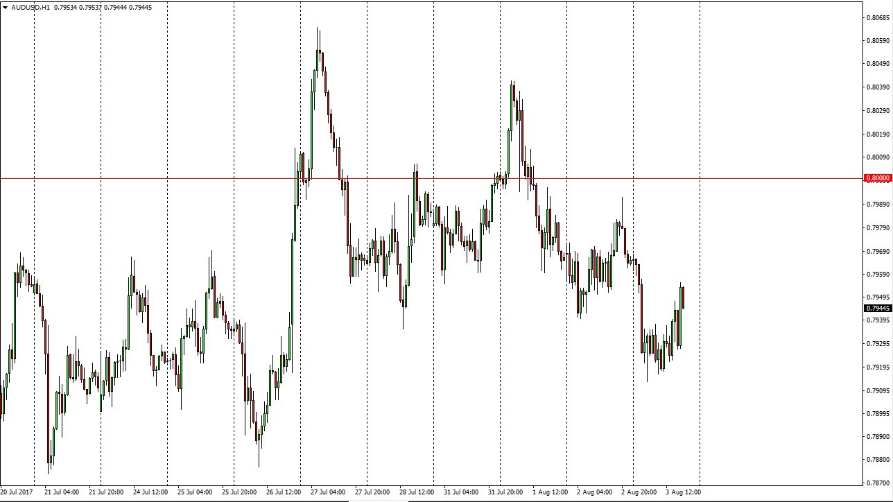 The Australian dollar initially fell during the Thursday session but found a bit of support near the 0.79 level, a key support level on the longer-term