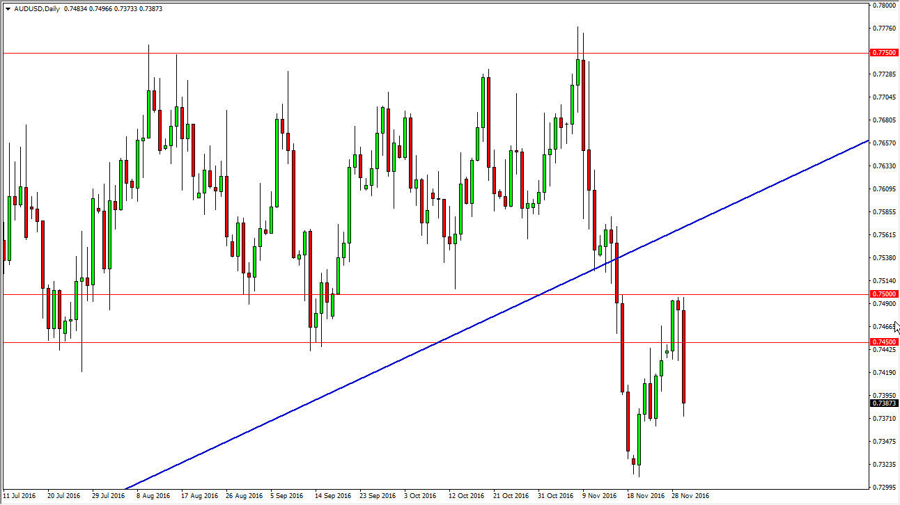 The AUD/USD pair fell rather significantly during the day on Wednesday as the 0.75 level continues to offer quite a bit of resistance. It looks as if we