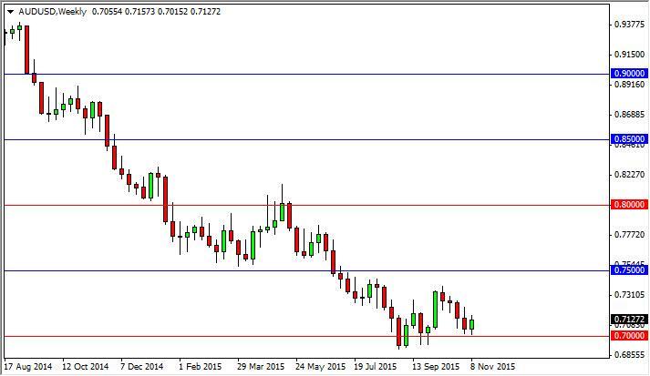 The AUD/USD pair had a slightly positive week, bouncing off of the 0.70 level. Because of this, the market looks as if it is ready to continue consolidating overall, but it is a relatively tight range to deal with, so having said that it’s very unlikely for us to start placing longer-term trades at this moment. We like shorter-term charts though, as we could trade back and forth in this general vicinity. Ultimately, we will simply sit on the sidelines and wait to see whether or not we get an impulsive candle that we can trade.
