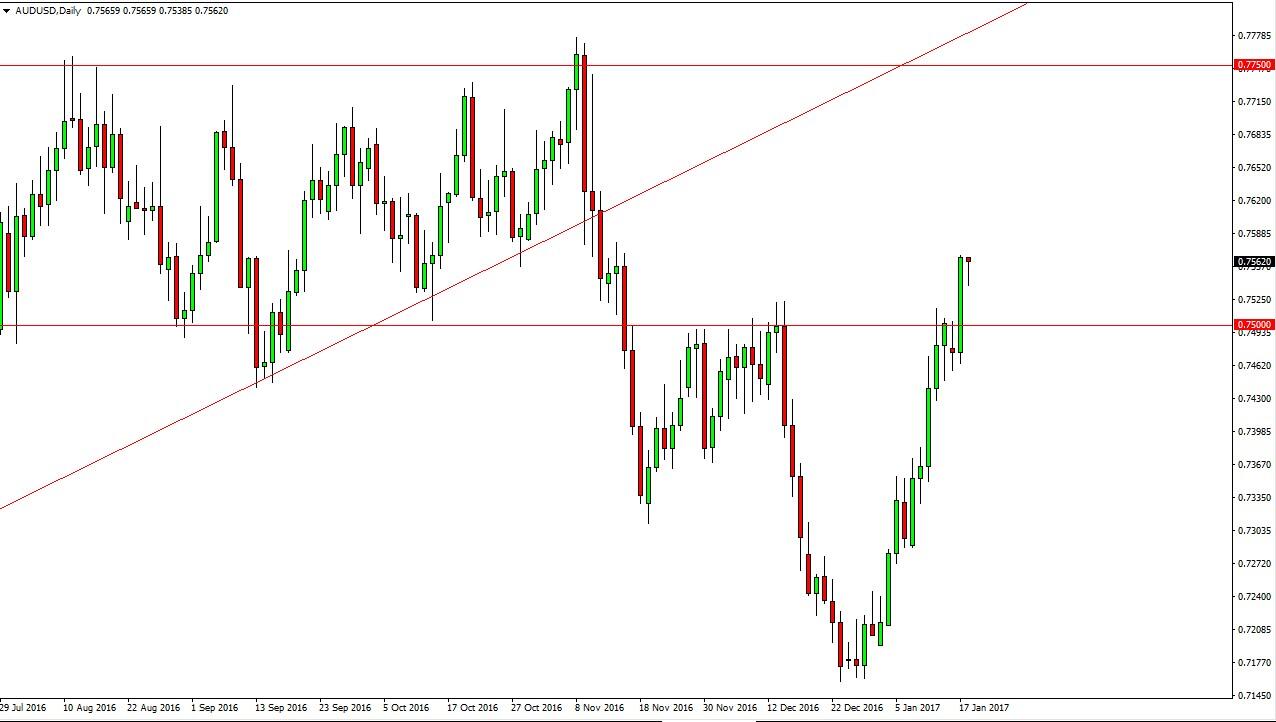 The Australian dollar fell initially on Wednesday, but found enough support to turn around and formed a hammer. If we can break above the top of the hammer, I believe that the market will continue to go higher. The attention to gold, it looks as if it is trying to break out, and that of course will make the Australian dollar attractive. I believe that the 0.75 level underneath is the “floor” in this market, so if we stay above there is can be almost impossible to consider selling this currency pair.