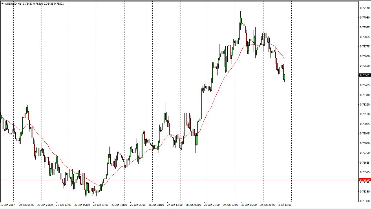 The Australian dollar broke down during the day on Monday, reaching towards the 0.7650 level. Now that we have not found support underneath, the market
