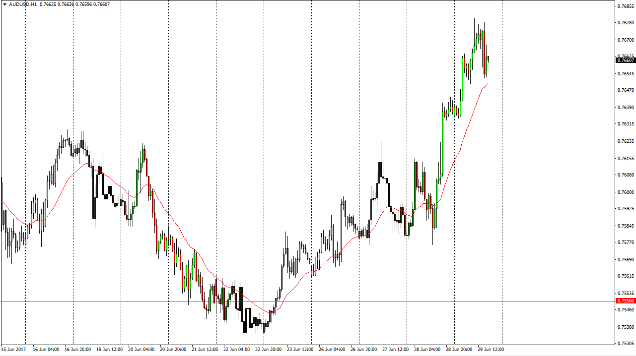 The Australian dollar rallied on Thursday, reaching to the 0.7680 region. We found enough resistance there a pull back slightly but it appears that the
