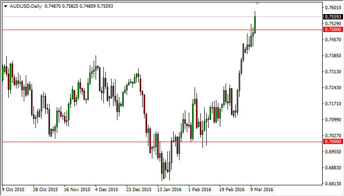 The Australian dollar has broken out. We are clearly above the 0.75 level, as we closed almost all the way to the 0.76 level during the day on Friday.