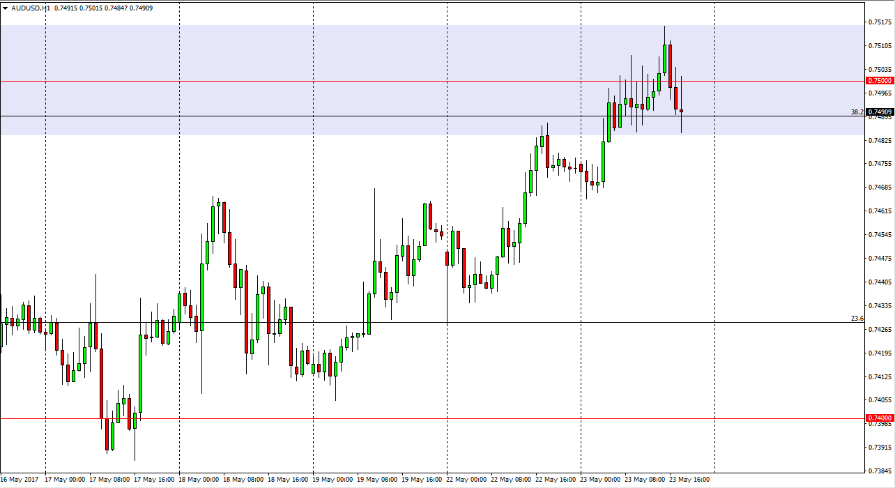 The Australian dollar had an interesting session on Tuesday, as we broke above the psychologically significant 0.75 level, but turned around to form a
