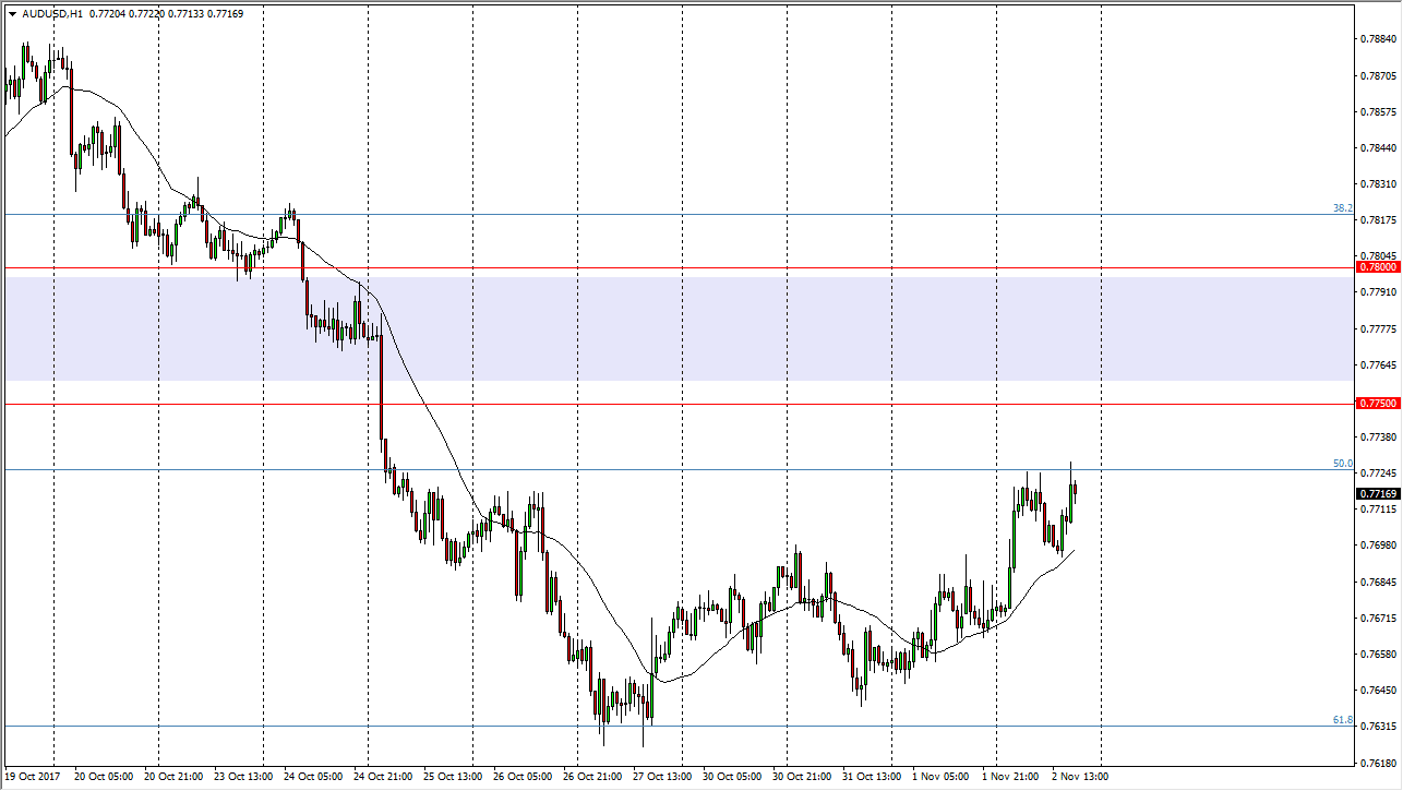 The Australian dollar rallied during the trading session on Thursday, as we reached towards the 0.7725 level. However, I see a massive amount of