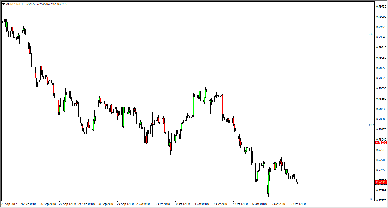The Australian dollar rolled over a bit on Monday, testing the 0.7750 level again. This was the scene of major resistance in the past, so I assume that