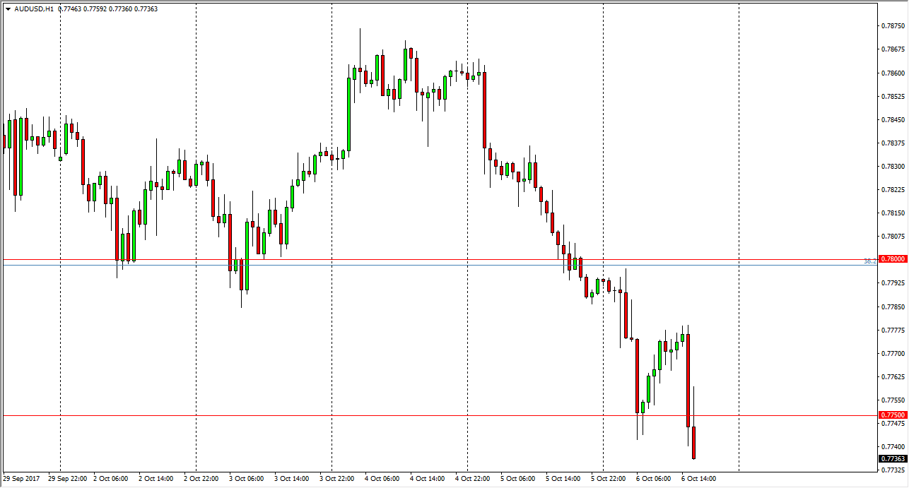 The Australian dollar initially tried to rally during the session on Friday, but found the 0.7750 level to be resistive after we broke down below it. This