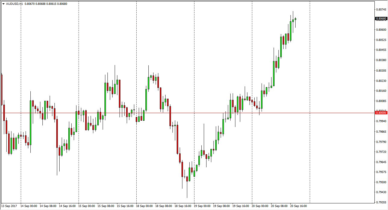The Australian dollar exploded to the upside on Wednesday, using the 0.80 level as a springboard. Now that we’ve clear that level and more importantly,