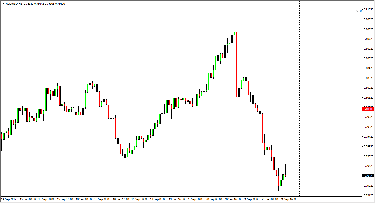 The Australian dollar fell precipitously against the US dollar during the session on Thursday, as it appears that the Aussie has run out of steam. On the