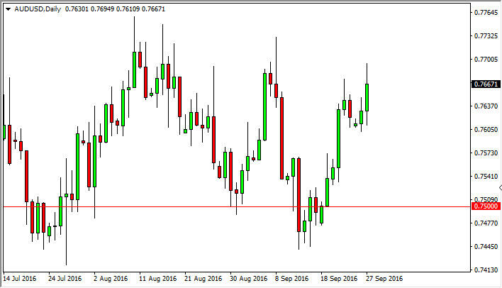 The AUD/USD pair had a slightly positive session during the day on Tuesday, breaking above the 0.77 level for the briefest of moments. I believe that the