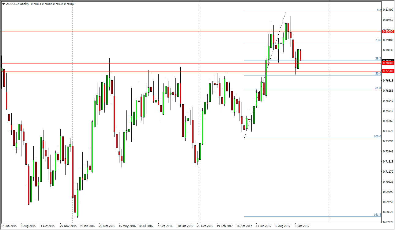 The Australian dollar fell during the bulk of the week, reaching down towards the 0.78 level. Part of this was due to gold selling off, as it looks as if