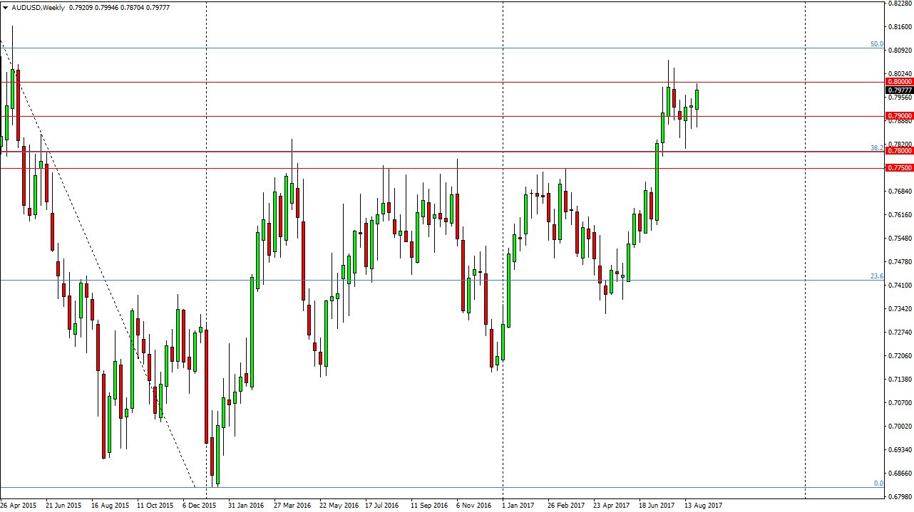 The Australian dollar is approaching the 0.80 level, an area that has been vital one weekly chart. This market looks as if it wants to break out, and once