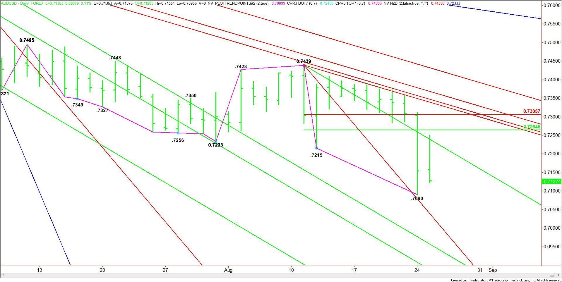 Technically, the main trend is down according to the daily swing chart. The new short-term range is .7439 to .7090. On Tuesday, the Forex pair found resistance on a downtrending angle from the .7439 main top. This angle drops in at .7219 today.