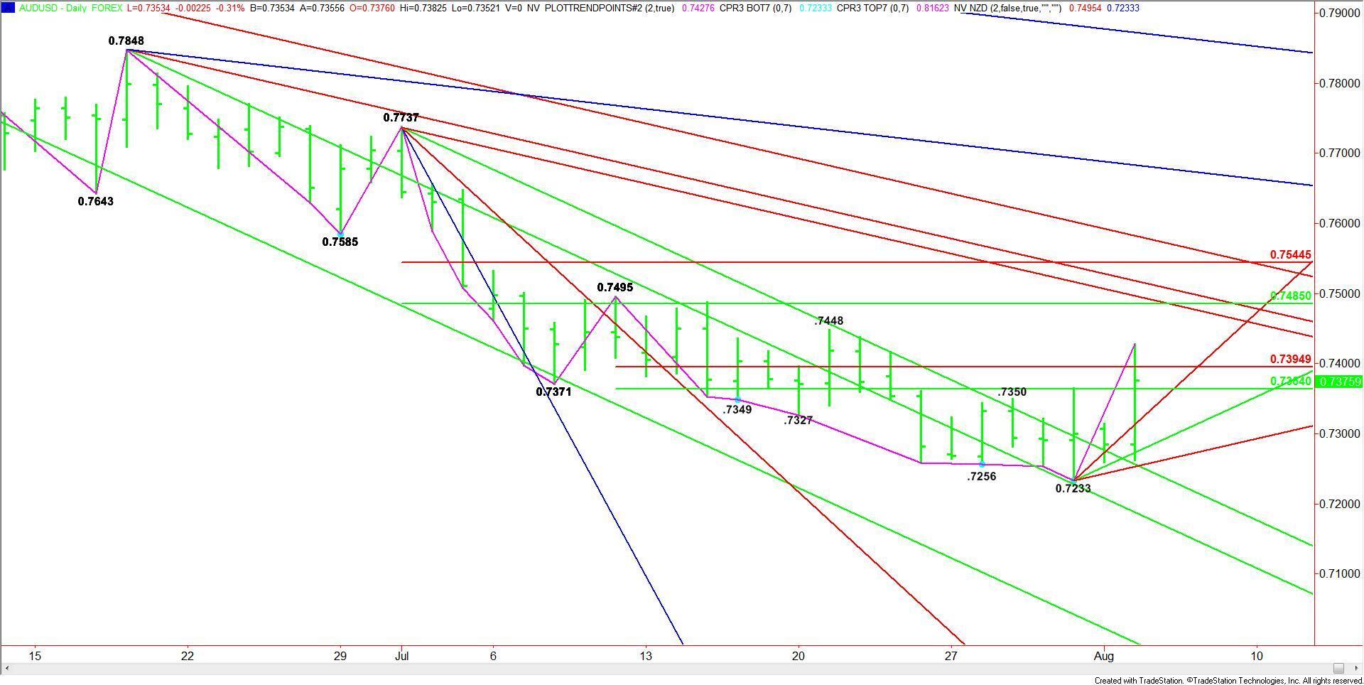 Timing is an issue too. Because of the important U.S. Non-Farm Payrolls report on Friday and its impact on the Fed’s interest rate decision, the AUD/USD could trade sideways into August 7.