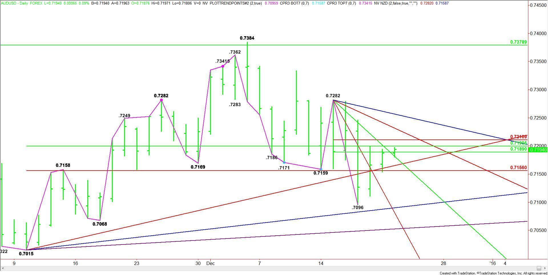 The short-term range is .7282 to .7096. Its retracement zone is .7189 to .7211. The AUD/USD is also trading inside this zone.