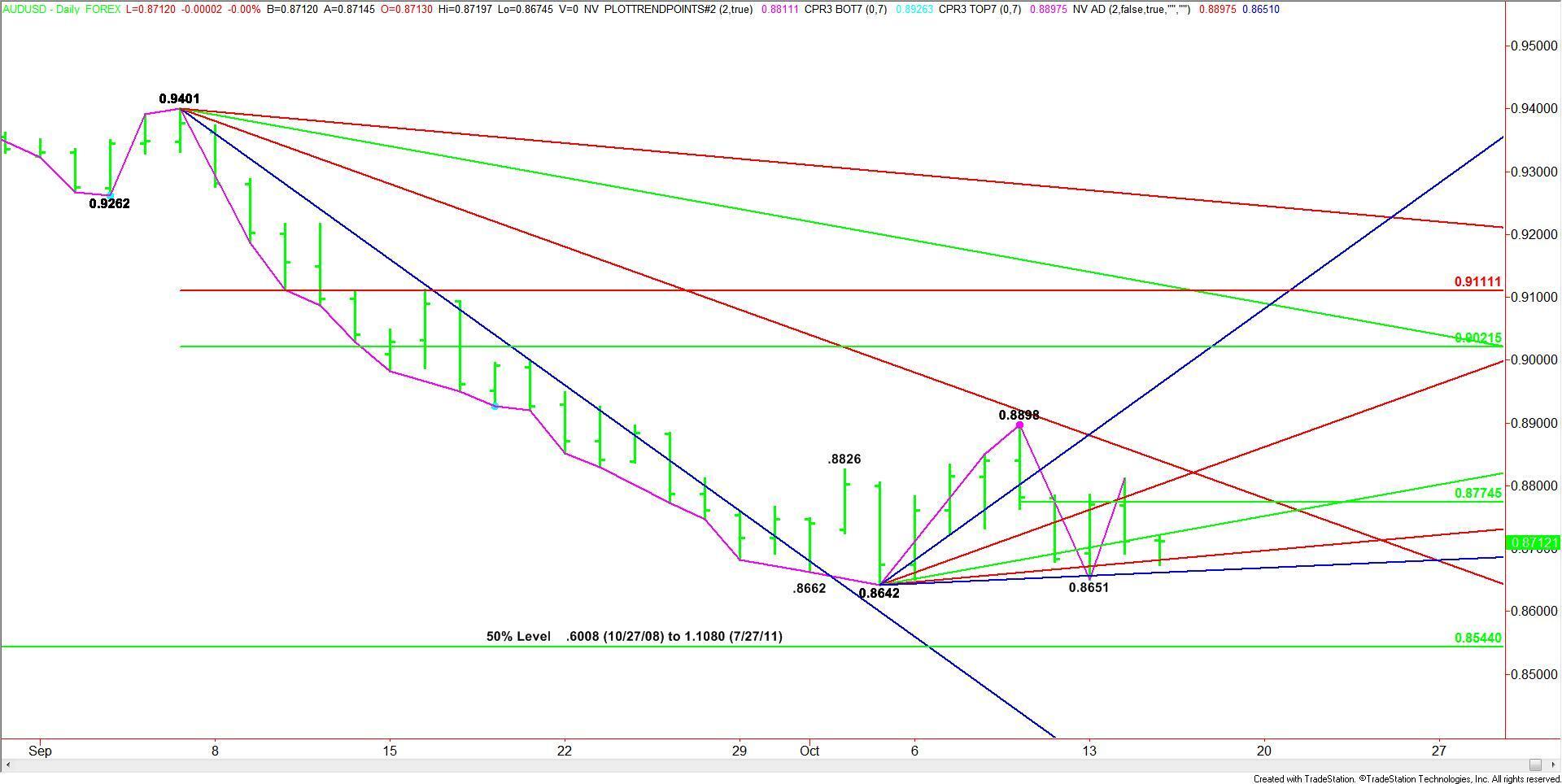 The AUD/USD rallied early in the session on Tuesday, but buyers couldn’t hold on to the gains and the market settled lower. The higher-high, however, made .8651 a new minor bottom.