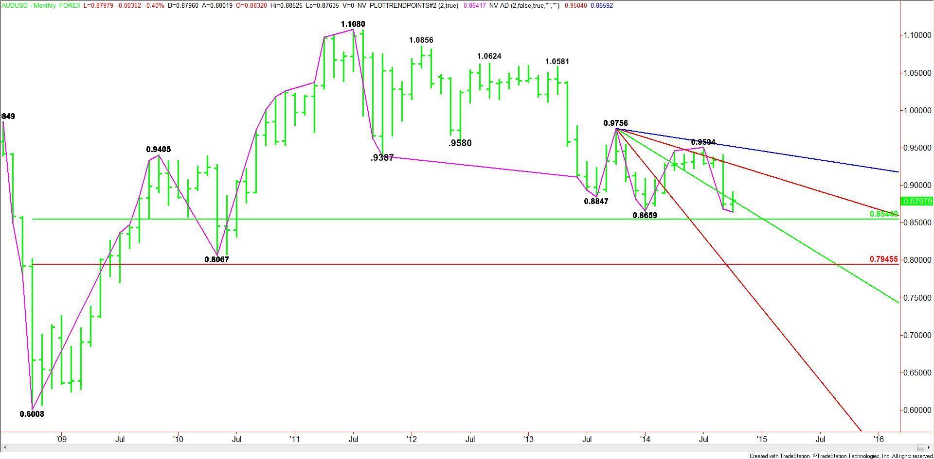 Technically, oversold conditions rather than a change in the fundamentals led to last month’s higher close. Early in the month, the Aussie took out .8659 before buyers came in at .8642 to support the market. This was most likely short-covering since the fundamentals support lower prices.