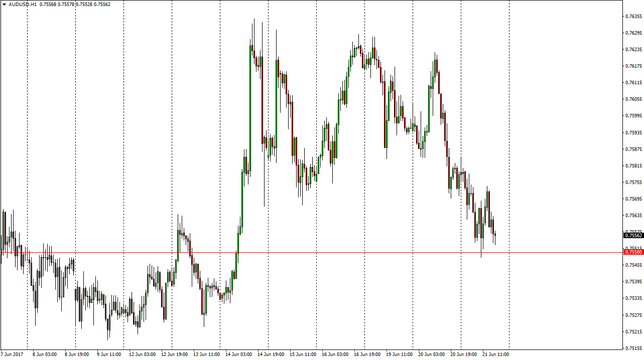 The Australian dollar fell initially during the day on Wednesday, reaching towards the 0.7550 level underneath, finding a significant amount of support. We bounced from there, but then found a significant amount of resistance at the 0.7575 level. Because of this, we rolled right back over, and reached towards that area. It now appears that the 0.7550 level underneath continues to be rather supportive overall, and I believe that as long as we can stay above that level, the Australian dollar will more than likely continue to show signs of strength. On the other side of the coin, we have the Federal Reserve looking to raise interest rates at least once, if not twice in the relative near future. Because of this, the market will probably remain very volatile.