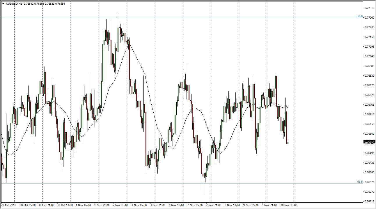 The Australian dollar went sideways initially during the trading session on Friday, and then broke down significantly. The 0.7650 level looks to be a bit supportive, and I think if we can break down below there we are probably free to go back down towards the lows again from the Tuesday session. A breakdown below the 0.76 level should be even more negative, and we could go to the 0.75 level. That area being broken to the downside is a major change of events, and sends this market looking to at least the 0.73 level, if not the 0.70 level. In the meantime, I suspect that it is going to be very noisy and unless the gold market picks up again, it makes quite a bit of sense for this market break down.
