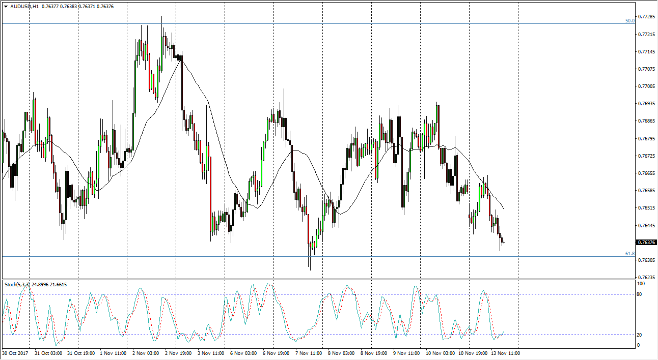 The Australian dollar gap lower at the open on Monday, turned around to fill the gap, and then rolled over to test the 0.7625 level. The market underneath