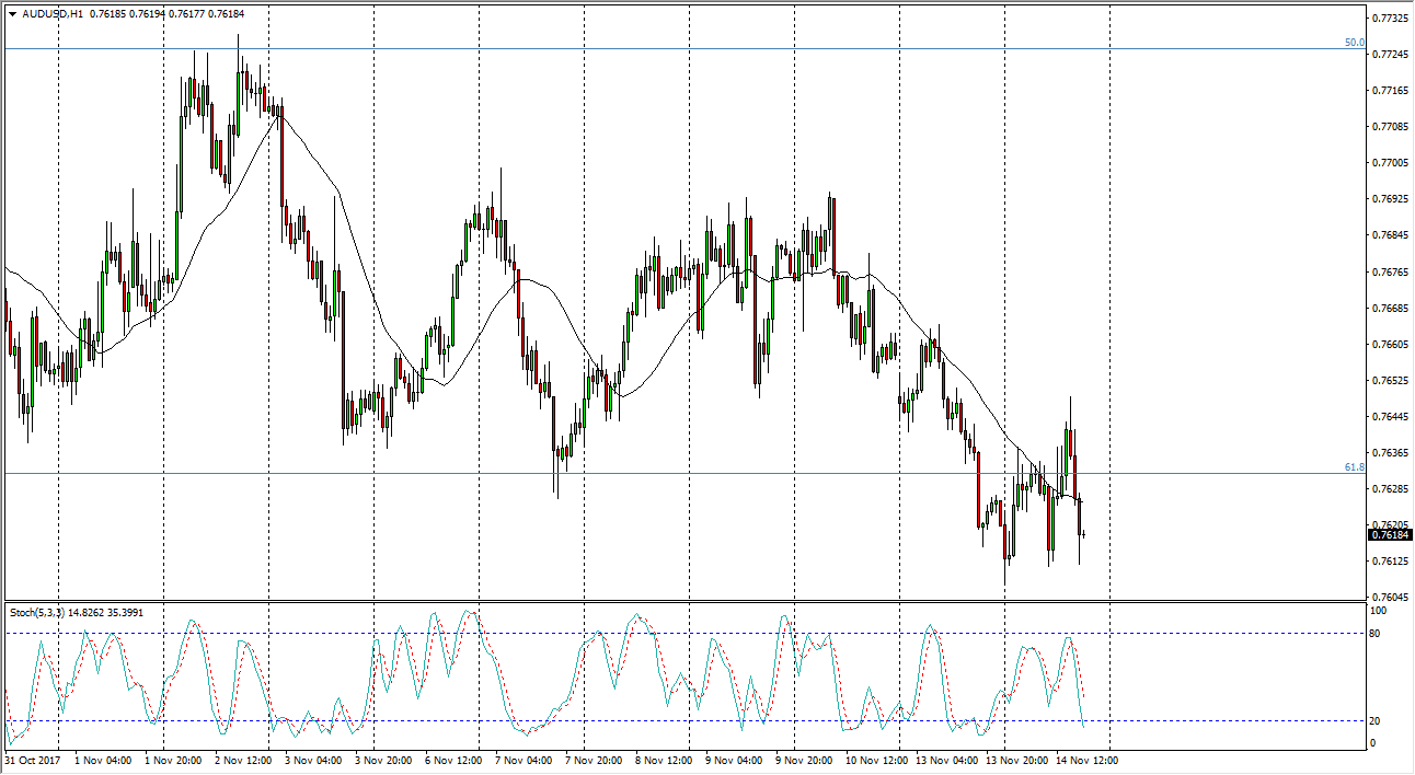 The Australian dollar has been very noisy during the trading session on Tuesday, as we continue to pound to the downside. It looks as if we are going to try to break down below the 0.76 handle, and if we can do that, it’s likely that the market will continue to go much lower with the first level of interest being the 0.75 level underneath, which of course is supportive. It’s a large, round, psychologically significant handle, and with that being the case it’s likely that the market will be very noisy and that level. If we can break down below there, and I think we will, it’s likely that the market should then go down to the 0.7350 level after that. The markets continue to be very noisy, but quite frankly I don’t think that the Australian dollar will hold any type of support for a significant amount of time.