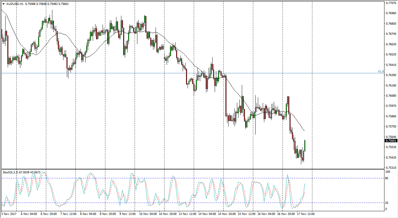 The Australian dollar has fallen a bit during the day on Friday, showing signs of struggle against the US dollar you again. The 0.7550 level underneath