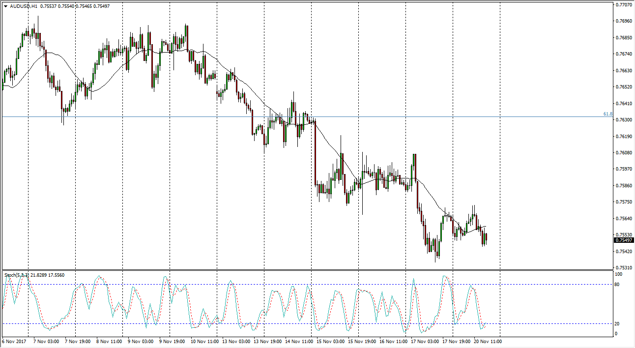 The 0.76 level above is resistance, and it’s not until we were to break above there that I think the market can pick up some momentum. If we were to break down from here, I suspect that the move would be somewhat rapid, and possibly vicious. The Australian dollar has a lot of headwinds facing it, not the least of which is a bit of a “risk off” attitude around the world. Stock markets have gotten a bit elevated, and volumes are dropping, then typically means that we could see a bit of a selloff when it comes to riskier assets, and the Australian dollar of course falls into that category. If we have trouble with Asian markets as well, that could also influence the Aussie dollar. I favor the downside, but am more apt to sell rallies than anything else.