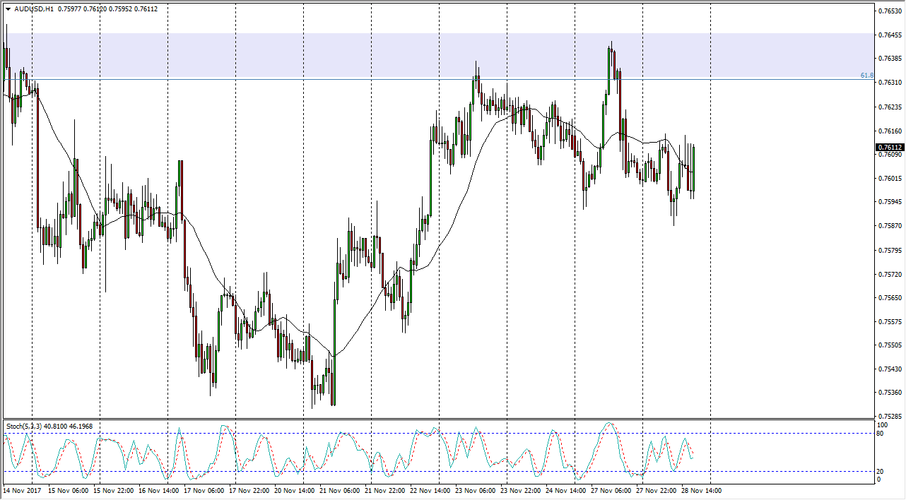 The Australian dollar went back and forth during the course of the trading session on Tuesday, bouncing around the 0.76 handle.