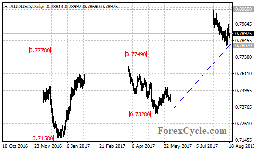 AUDUSD rebounded strongly to 0.7960 area after approaching the bullish trend line on its daily chart, suggesting that the pair remains in the uptrend from