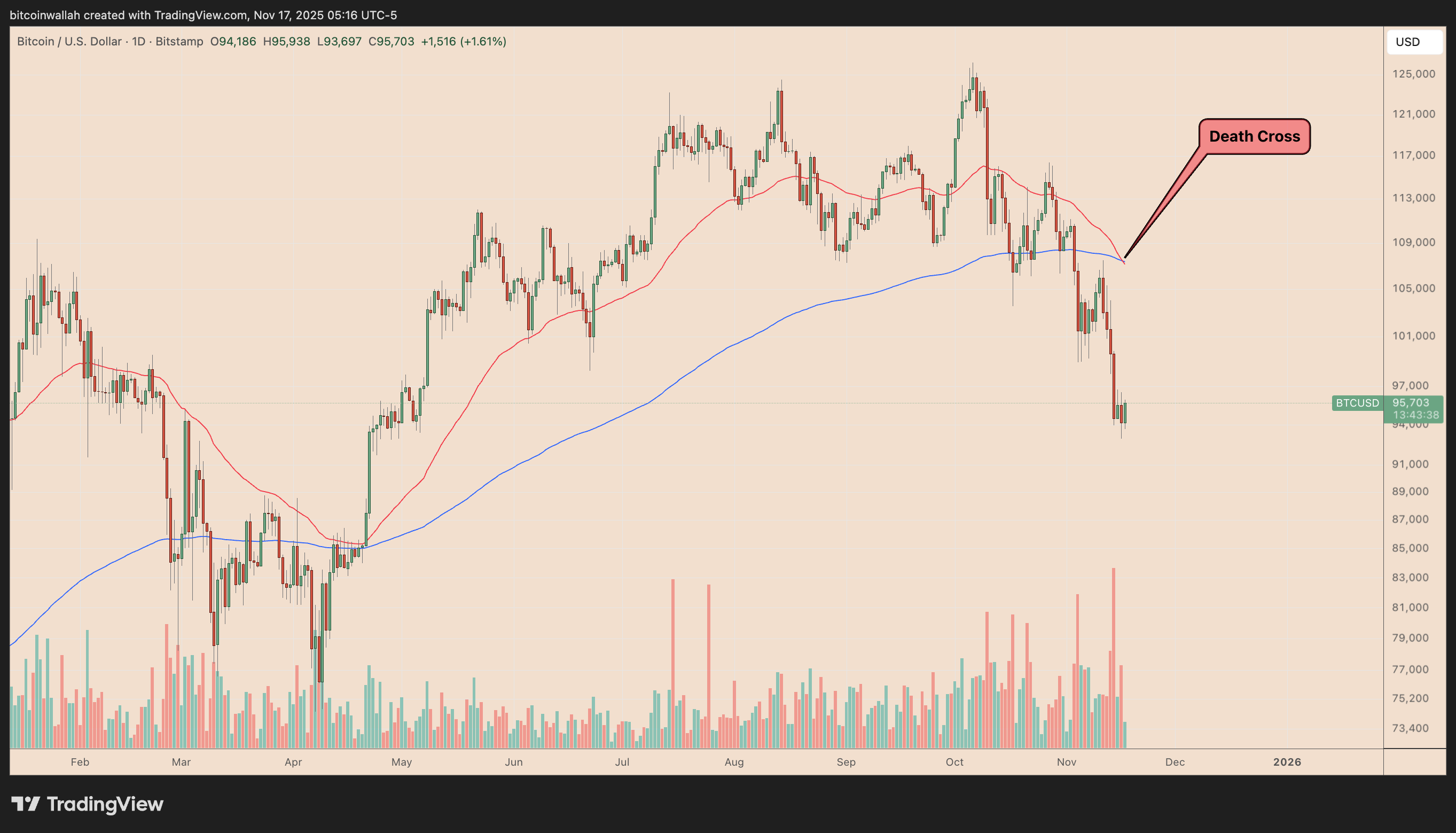 Bitcoin’s ongoing price decline has left behind its first daily “death cross” in over two years. And it may prompt a rebound move toward $100,000.