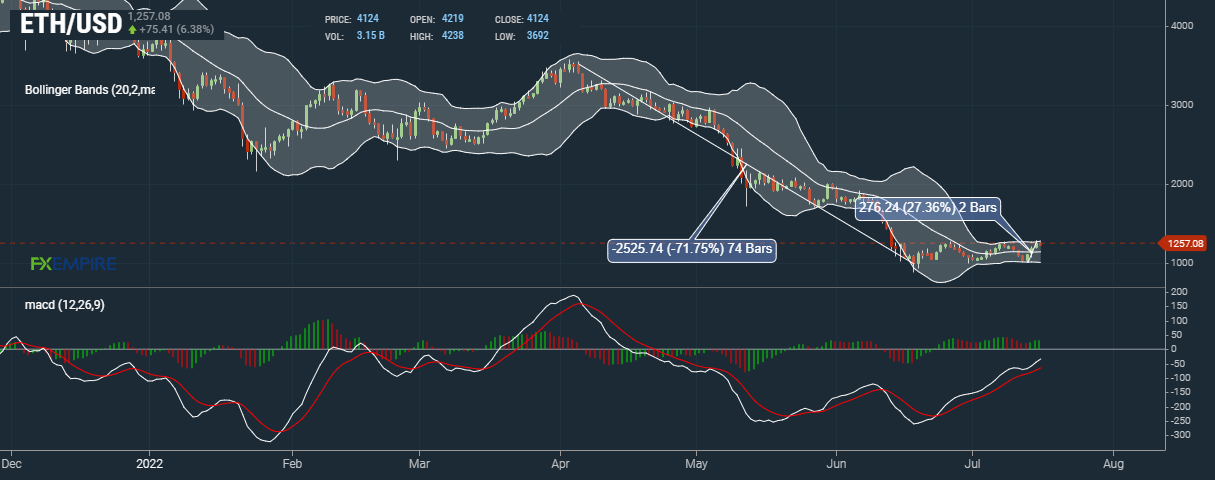 While Bitcoin needs bullishness, Ethereum is wasting away the bullishness that it already has. The altcoin king, which rose by 27.36% in the last three days, was found to be trading at $1,257 at the time of writing.