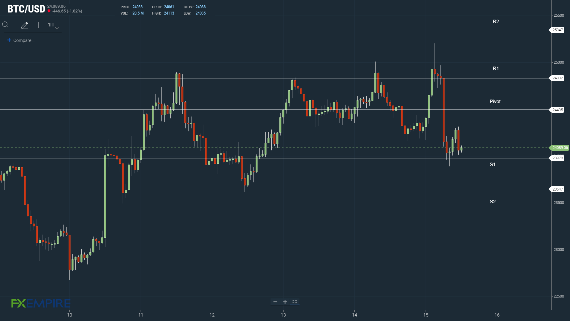 BTC broke through the First Major Resistance Level (R1) at $24,832 before testing the First Major Support Level (S1) at $23,978.