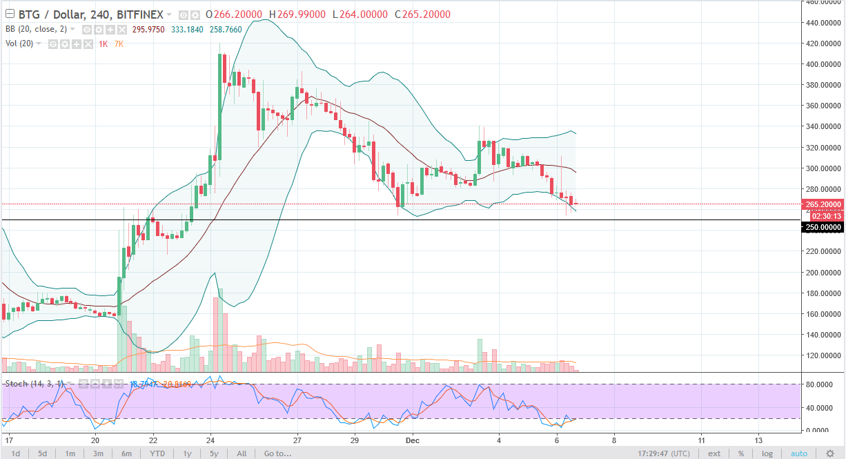Bitcoin Gold Bitcoin gold rolled over a bit during the trading session, as we are looking towards the $250 level for support. We are currently crossed
