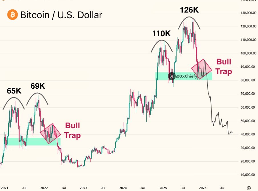 Bitcoin experienced a post-cycle blow-off and subsequent correction, reinforcing the idea that the price may decline to as low as $40,000 if the four-year cycle model plays out as intended.