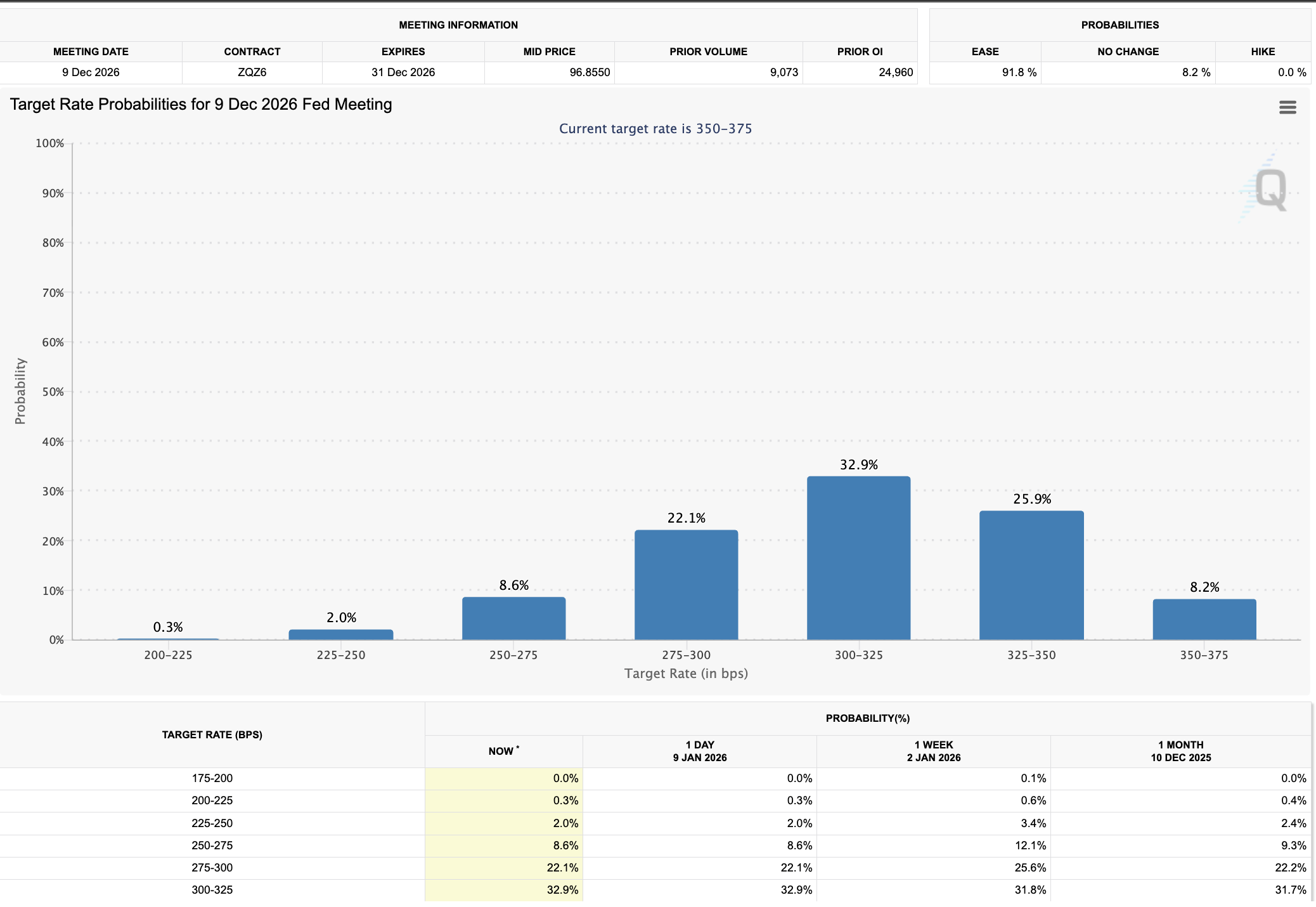 The Federal Reserve delivered three interest-rate cuts in 2025, and CME FedWatch data shows bond traders pricing in up to two additional cuts in 2026.
