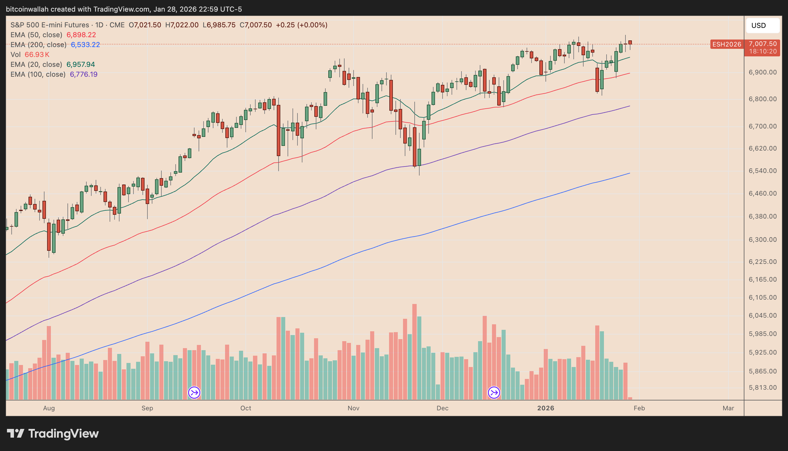 Futures contracts for the S&P 500 Index, for instance, dipped by as much as 0.52% on Jan. 29, mirroring Bitcoin’s decline on the same day.
