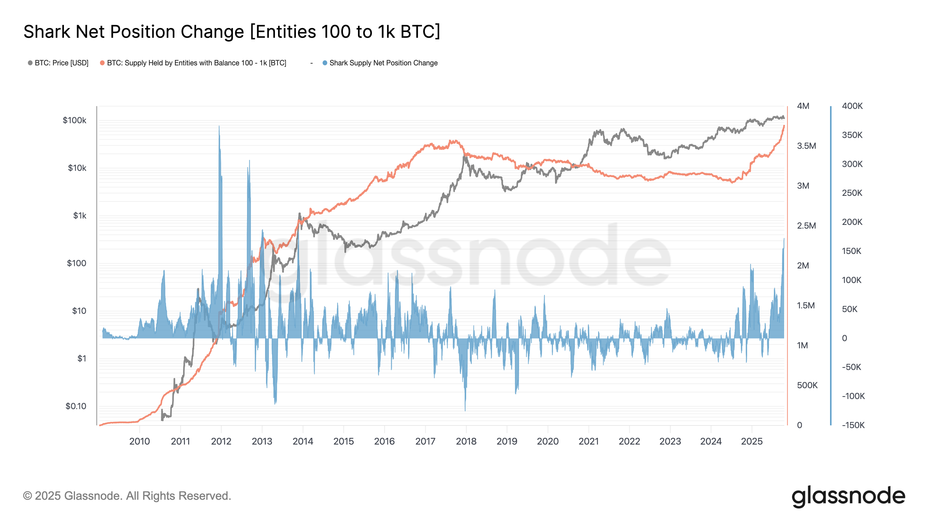 The surge in net inflows to shark wallets suggests these holders see value at current levels, using the ongoing correction to build positions.