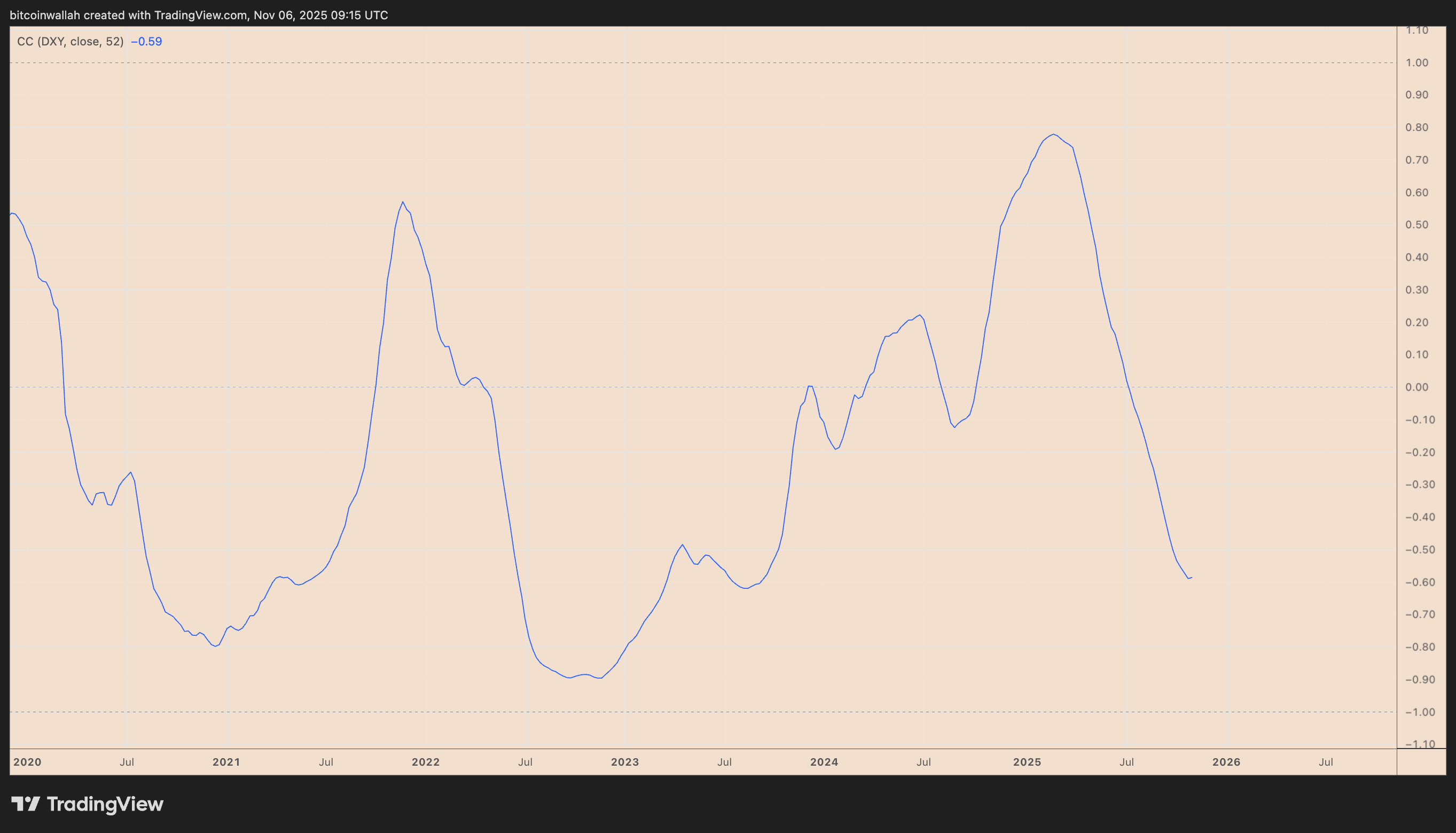 Historically, dollar downtrends have coincided with major Bitcoin rallies, as weaker US dollar liquidity pushes global investors toward alternative assets.