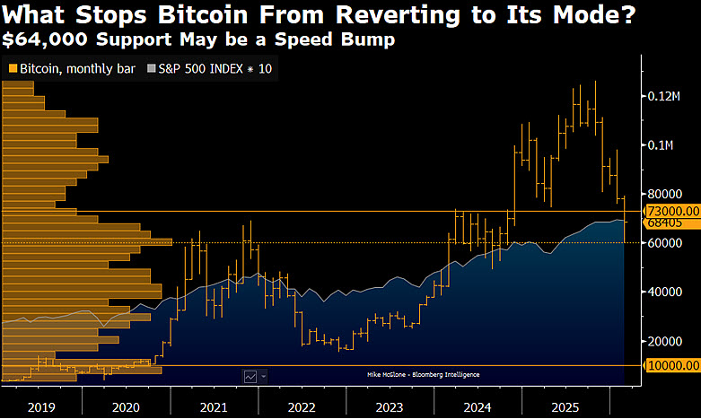 Bloomberg Intelligence strategist Mike McGlone said that $10,000 represents Bitcoin’s long-term statistical center because it was the most transacted price zone before the pandemic-era stimulus cycle.