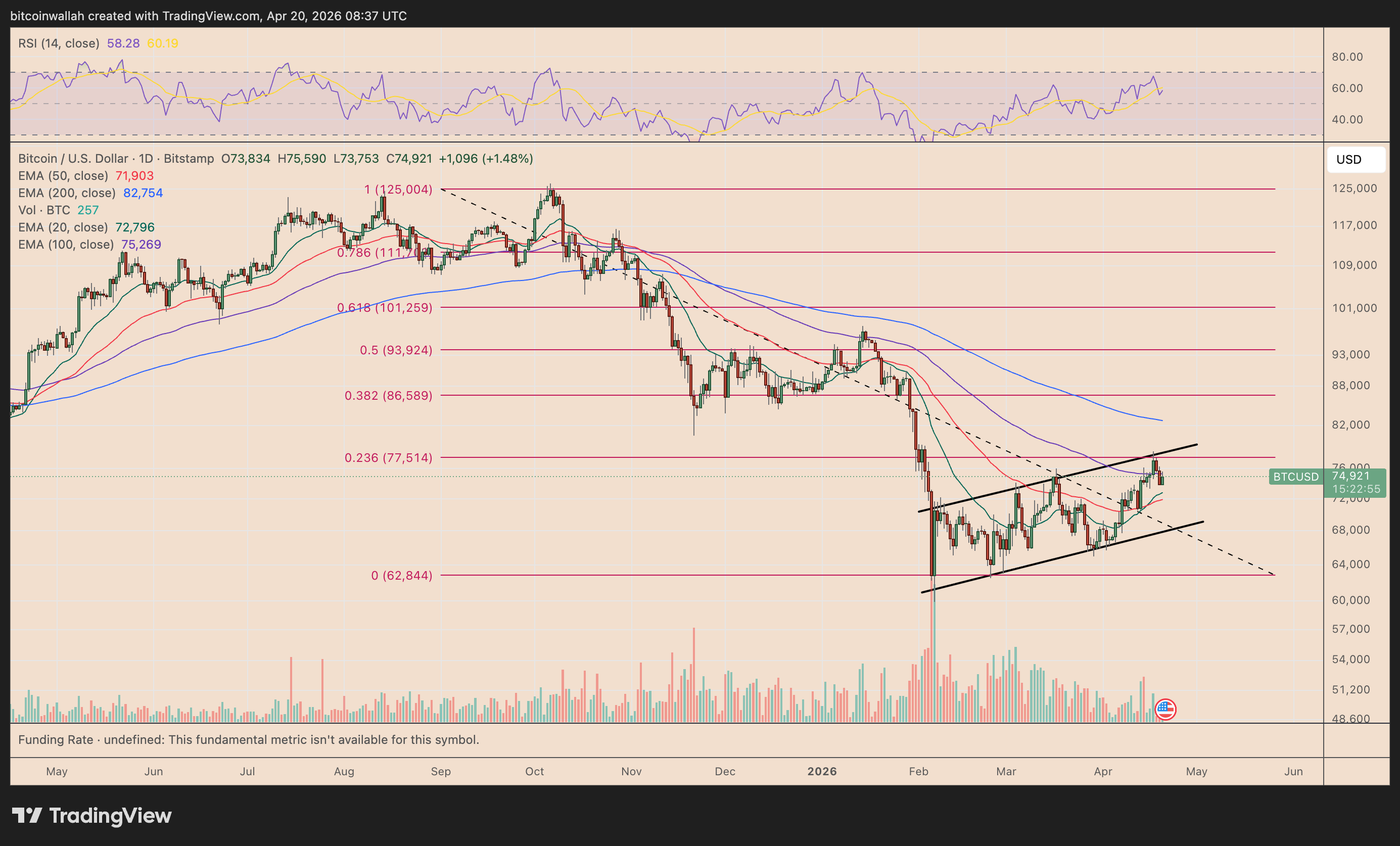 The BTC/USD exchange rate touched $75,590 during the Asian session on Monday, still down by over 3.50% from last week’s top of around $78,385. These whipsaw moves show growing indecisiveness among traders, mostly due to mixed headlines about the ongoing US–Iran ceasefire.